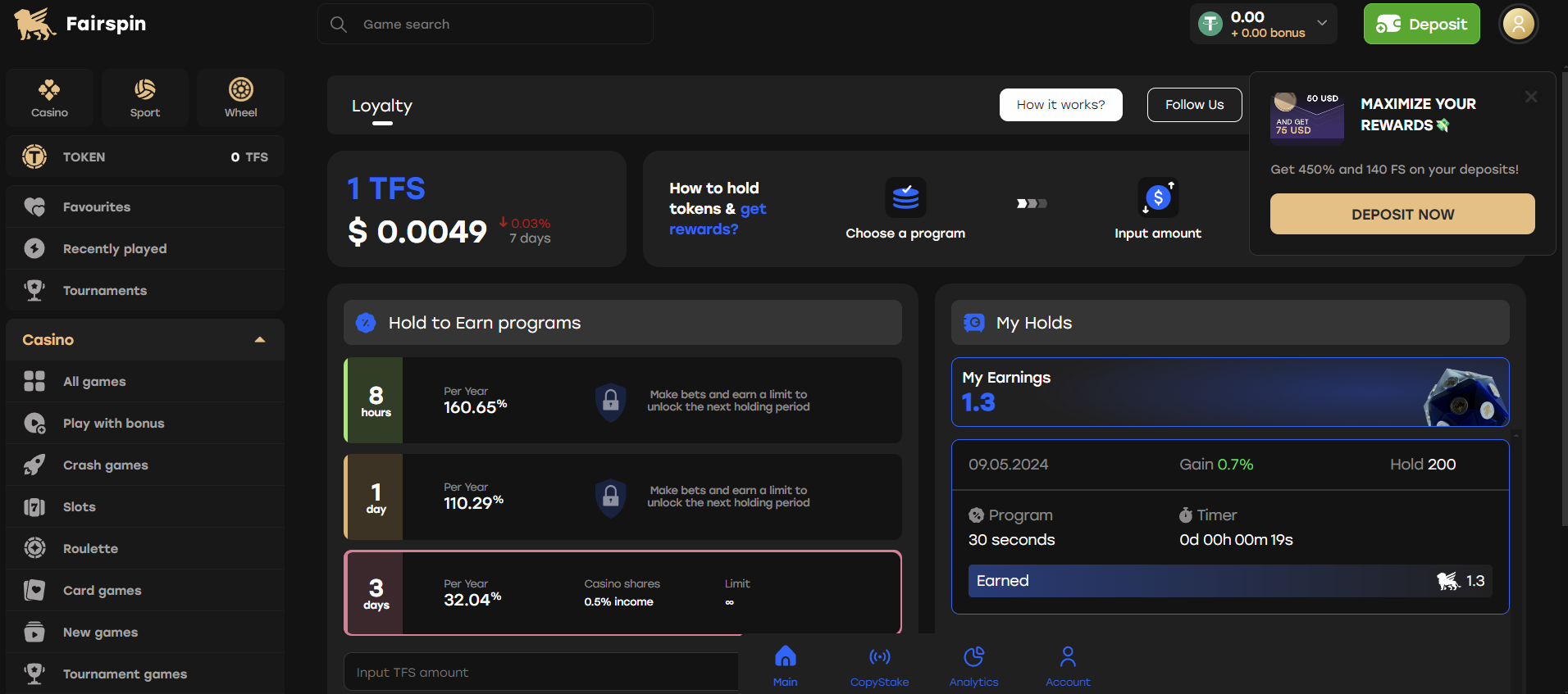 There are 10 degrees in the Fairspin commitment program. The number of TFS tokens you have actually made in the last 365 days will certainly establish your level. This program features three benefits:
